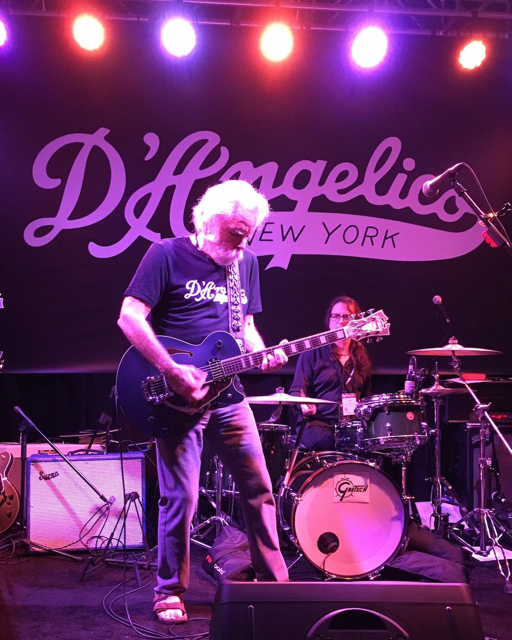 Not only did D’Angelico Guitars make a custom Bob Weir Deluxe SS model guitar, just for the artist, they hosted a special invitation only event at Winter NAMM 2017 on January 20, 2017 to see Bob in action playing his new axe well before its release! As one of very few invited guests, I was able to be in the front row for the entire practically private show!