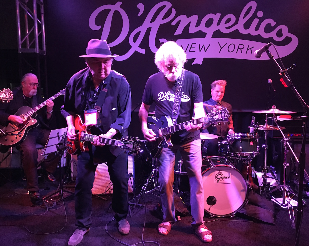 Jeff “Skunk” Baxter and Gene Cornish both picked up D’Angelico Guitars to jam along and Robert Randolph on steel guitar! It was exciting to see all of these talented guitarists from top bands/artists all showing off D’Angelico’s products!